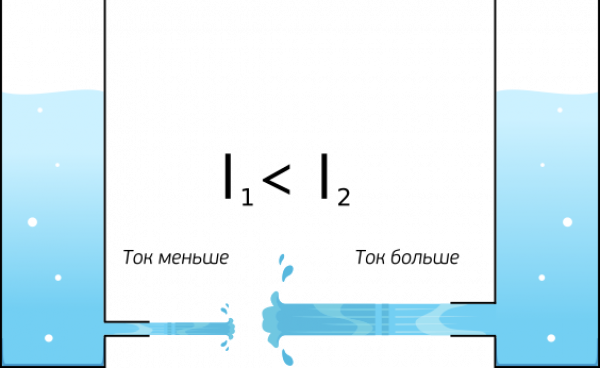 Рисунок 1. Наглядное представление электрического тока как жидкости. Для наглядности, представим резервуар с водой и выходящую из его нижней части трубу (Рис. 1). Представим, что вода — это электрический заряд, а молекулы воды — элементарные носители